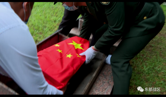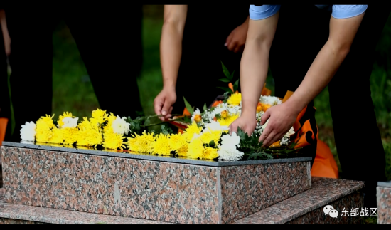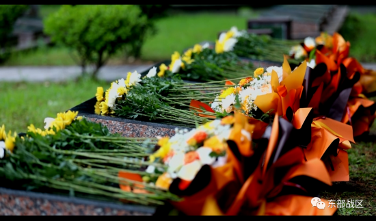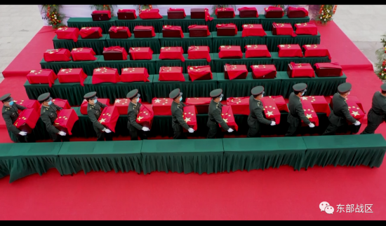 随后,礼仪民兵将59名烈士的遗骸送至墓穴,由殡葬服务人员在墓入口接骨灰盒完成安葬,参加仪式人员依次向烈士敬献鲜花,奏《献花曲》,告慰先烈,寄托哀思。