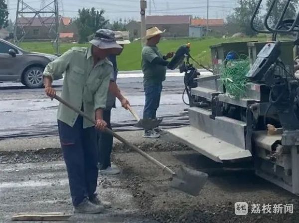 洒水车来回穿梭,及时给刚摊铺的水泥路面降温。记者在现场感受到,被洒水车喷洒过的路面,像似蒸笼,被太阳炙烤的感觉丝毫未减。“每天10瓶水不在话下,衣服要反复汗湿好几遍,一天下来上面一层盐花。”现场工人包梦思告诉记者。