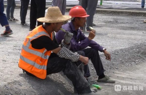 为减小高温酷暑对工人身体的影响,有序推进工程进度,施工单位还为工作人员准备了矿泉水、冷饮、绿豆汤、藿香正气水等防暑降温用品,同时错开高温时段组织施工。