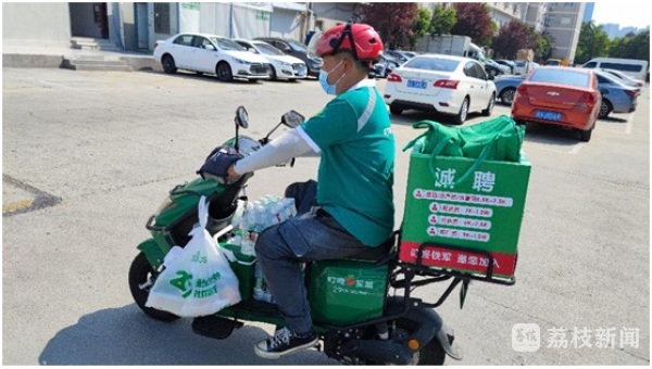 每天早上7点,叮咚买菜南京明发站的配送员刘文义已经忙碌起来,就算时间还早,送一趟单也让他热出满头大汗。一个上午他已经爬了十几栋楼,送了几十单。刘文义说,最近的订单东西很多也很重,加上天气热,基本上出去一趟就满头大汗了。最近高温天气下,西瓜、桶装水等大重量消暑商品配送的比以前多了很多。