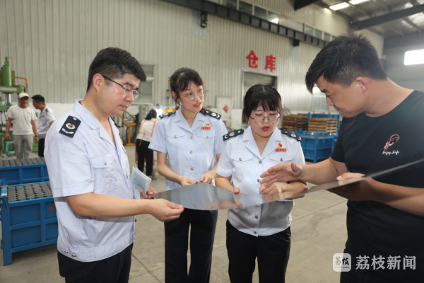 图为税务部门走进江苏快马新能源科技有限公司走访调研