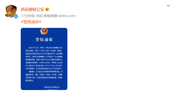 陕西省西安市公安局碑林分局官方微博截图