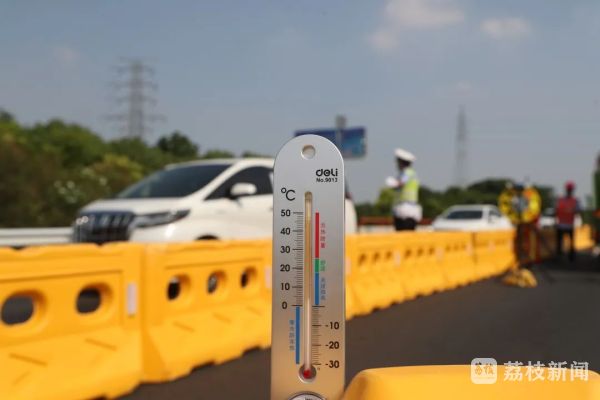 此时,随身携带的温度计显示,周平执勤的位置,温度已经超过47℃。“苏通大桥桥面上的温度比这还要高,在那执勤的战友更辛苦。”周平说,由于户外紫外线强烈,为防止被晒伤,他和同事上路执勤都统一着长袖,“如果穿短袖,一天下来手臂都可能要脱皮。”