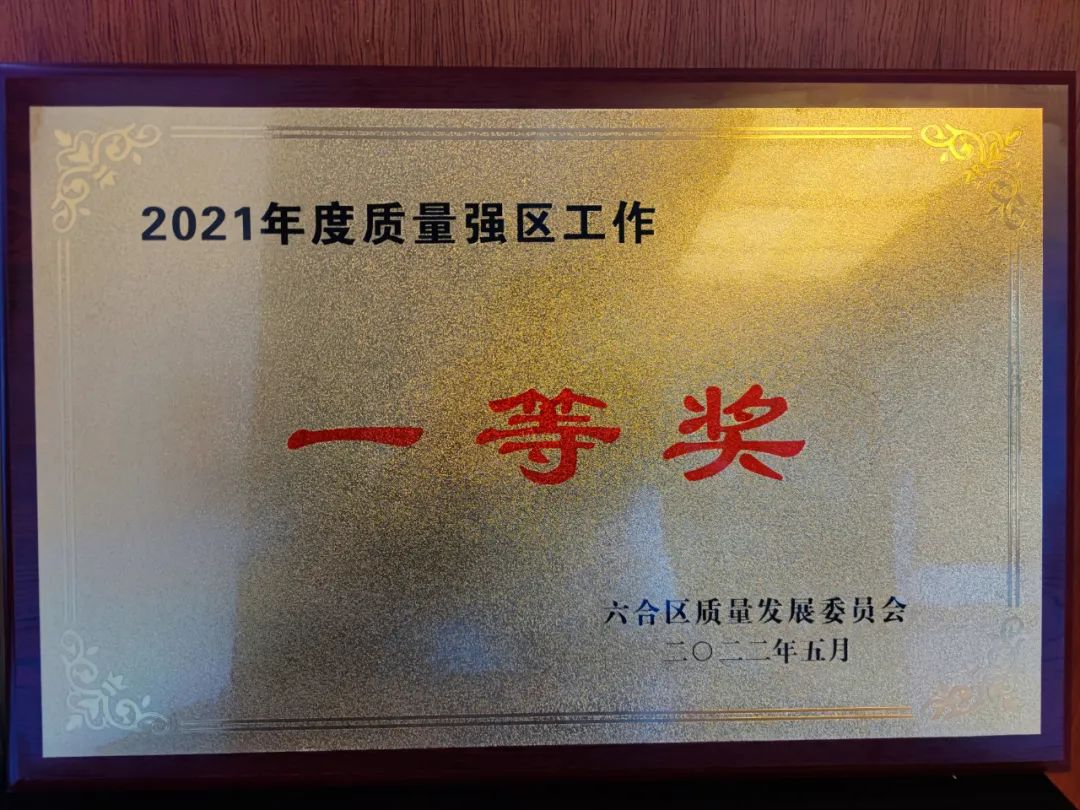 六合经济开发区获评2021年度质量强区工作一等奖,赛莱默(南京)有限公司、南京天诗新材料科技有限公司2家企业获得“2021年度六合区区长质量奖”。