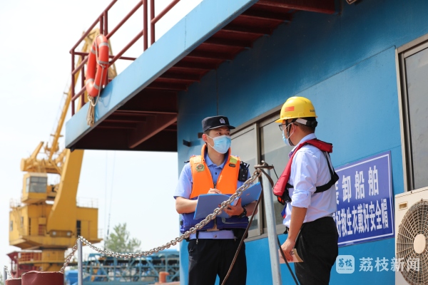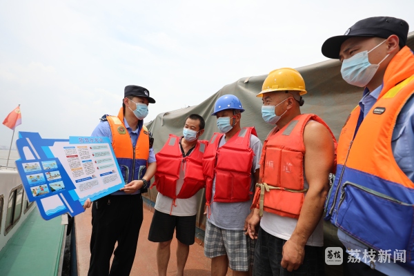 2022年7月14日,长航公安局镇江分局民警前往辖区疏浚砂工程作业水域、散货船停泊锚地等地开展安全检查,为高温作业船舶开展“夏季安全体检”,并结合夏季防溺水,为船民送上了一堂生动的防溺水防中暑小课堂。
