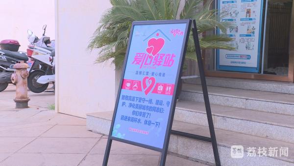 在谷里街道邻里大道上的这家饭店外,红白相间的“爱心驿站”海报被摆放在店门外醒目位置。店内还放置着医药箱、饮用水、绿豆汤等用品。一批来自于谷里街道清管所的环卫工人正在此稍作休息。谷里街道清管所组长徐宏梅说,不大的集镇片区共有4家这样的爱心驿站,这些店家都是街道餐饮协会的会员单位,而这一暖心举动,已经坚持了好几年。