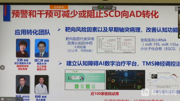 作为科技创新2030“脑科学与类脑研究”重大项目之一,团队通过相关机制的研究,可以推进检测试剂盒、相关治疗药物及方案的开发。徐运介绍,在日常生活里,记忆力减退等等症状一般分为生理性和病理性两种。生理性健忘是正常的,但是如果是病理性的,就需要高度重视。“我们使用检测试剂盒的话,就可以去预测是否有可能会向AD(阿尔茨海默病)转化,我们也设计了一些数字药物,用计算机像游戏的方式让患者来训练,减少和阻止ACD(主观认知下降)向AD(阿尔茨海默病)的转化。”