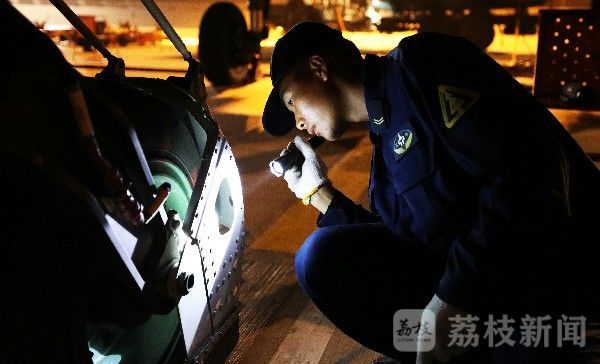 战机降落后,地勤人员迅速开展飞行后检查,快速完成再次出动准备,有效保证了夜间连续飞行的稳妥实施。