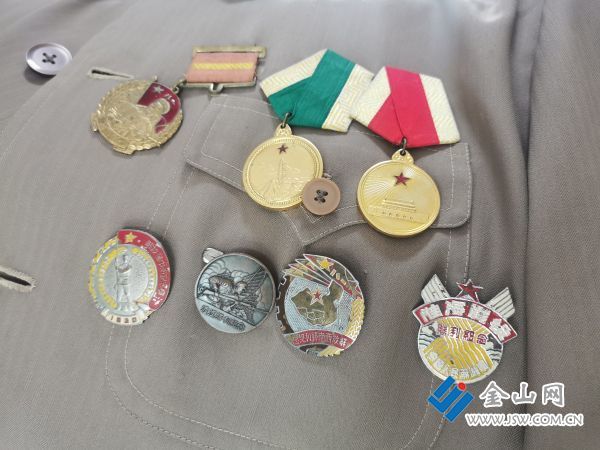 一盏茶几上摆着一个寿星蛋糕,四周整齐地摆放着“中国人民抗日战争胜利70周年纪念章”“庆祝中华人民共和国成立70周年纪念章”等,几本泛黄的老证件,还有一册翻看得卷起角的《中国共产党简史》。笑容可掬的李凤江老人坐在当中,为大家讲述他每一枚勋章的来历和当年的革命故事。烽火连天的岁月,他是舍生忘死的战士;和平年代,他是砥砺奋进的建设者。这位亲历了中国人民从站起来、富起来到强起来的的老人,时隔大半个世纪谈起往事依然充满情感。