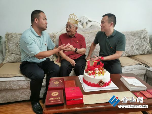 初心不改红心永远向党,身经百战见证百年沧桑。7月15日上午,七里甸街道天和星城社区百岁老人李凤江的家中比往常热闹许多,欢声笑语不断。这一天是李凤江老人100岁生日,润州区退役军人事务局、七里甸街道、天和星城社区的工作人员来到老人家中,与家人一道为他庆生,也给老人送去党和政府的关怀。