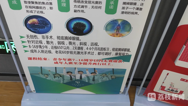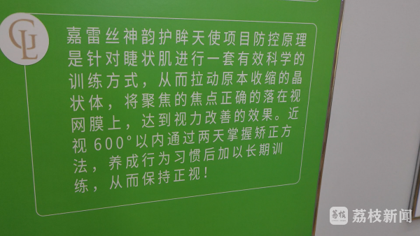 最近,南京一名家长反映,暑假期间,当地有护眼机构在一家书店大楼里打出海报,声称两天就能让近视儿童"康复视力、摘掉眼镜"。国家卫健委等部门早就明确,现有技术条件下"近视无法治愈",这家护眼机构如此宣传让家长产生了怀疑。该机构果真有这么神奇吗?能让近视儿童"康复视力"真的是"黑科技",还是一个噱头呢?