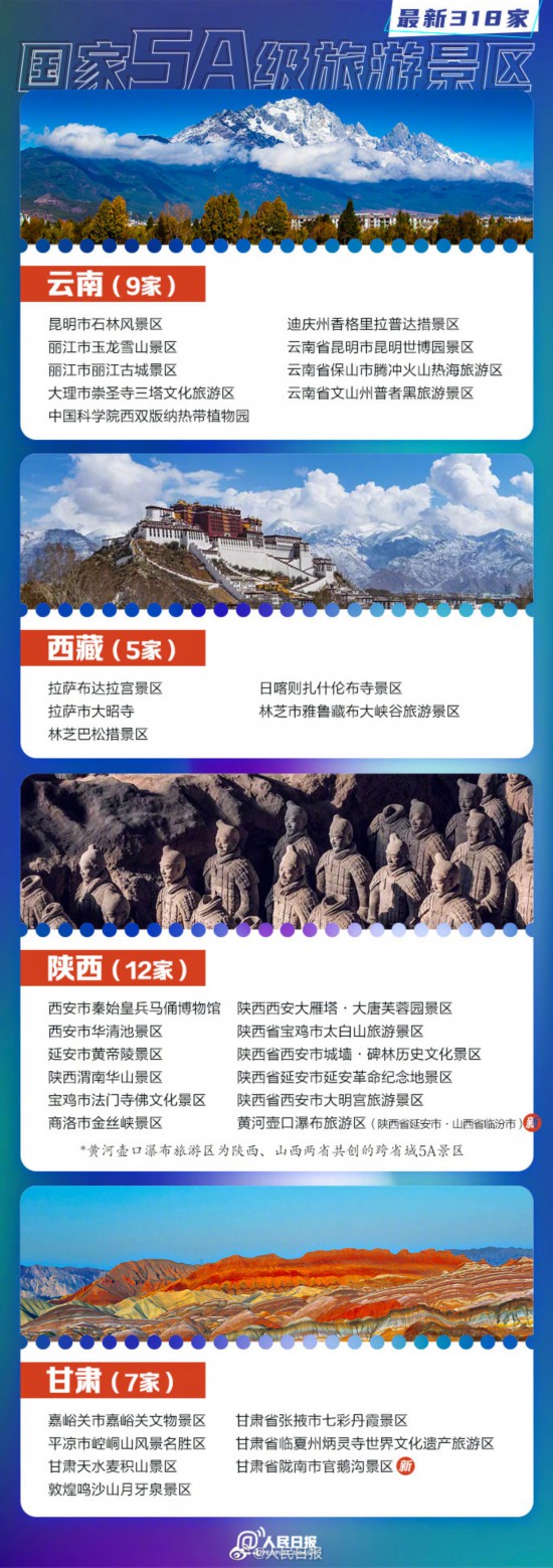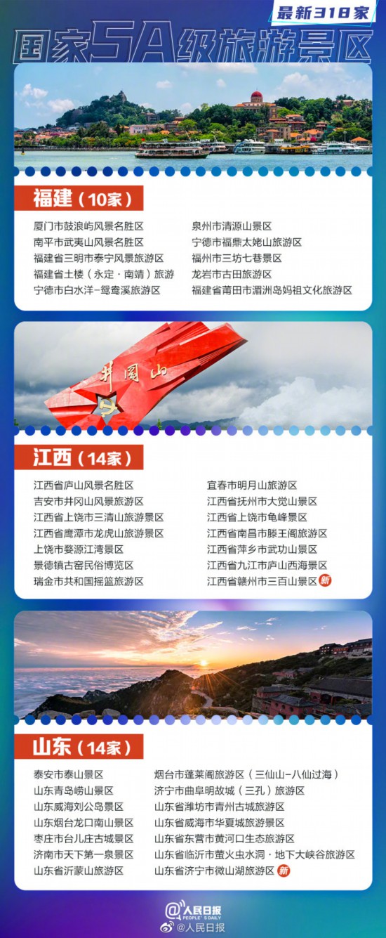 文旅部15日正式确定12家景区为国家5A级旅游景区。截至目前,全国共有318家5A景区。收好这份#最新5A景区全名单#↓↓