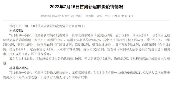 现将7月16日0—24时甘肃省新冠肺炎疫情信息公布如下: