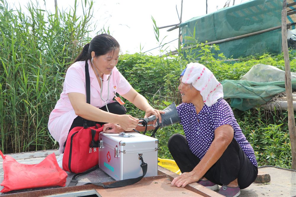 近年来,随着退湖还湿,渔民们纷纷搬迁上岸安置。2021年5月1日,吕正红也从二河村卫生室调到了胜利社区卫生室。23年间,她见证了渔村医疗条件的改善,标准化村卫生室让村民就医更方便,工作环境也更加舒适。但她依旧初心不改,把每一栋楼、每一位患者当作“新的渔船”记在心头,每季度至少向300名居民提供随诊服务。