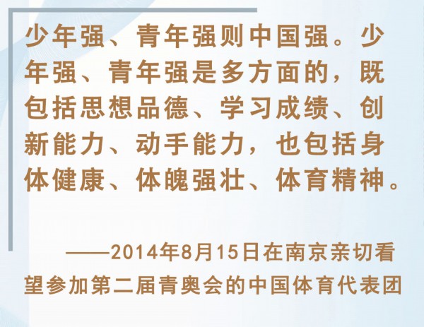 青少年是祖国的未来、民族的希望。强健的体魄是青少年成长成才的重要前提。对加强体育教育,增强青少年体质,习近平总书记念兹在兹。