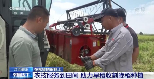 央视网消息:这段时间,在江西省鄱阳县,10多支农业服务队前往田间地头,帮助农户解决农机具故障,提升早稻收割效率,指导晚稻种植。