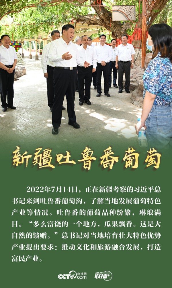 联播+“多么富饶的一个地方,瓜果飘香。这是大自然的馈赠。”7月14日,正在新疆考察的习近平总书记走进吐鲁番葡萄沟,了解当地发展特色产业等情况。