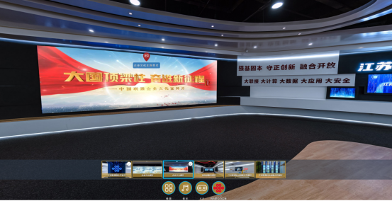 江苏联通“720°全景展厅”共分4个板块,除了企业文化板块之外,还有我为群众办实事成果展、高品质服务和科技创新应用等板块。从屹立于黄海海域的第一座5G基站到服务于沪苏通大桥的首个5G信号覆盖网络,从助力乡村振兴的数字乡村平台到赋能智慧制造的5G智慧应用,“云游”其间,江苏联通的网络保障、科技创新和央企责任尽收眼底,让观众“零距离”体验江苏联通高质量发展成果。