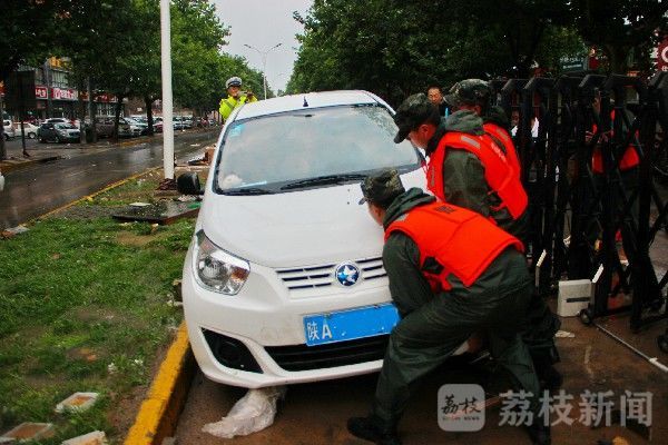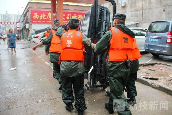 7月15日3时许,武警渭南支队组织20余名抢险救援力量,携带冲锋舟、救生衣等救援装备,到达内涝最严重的主城区参与救援。