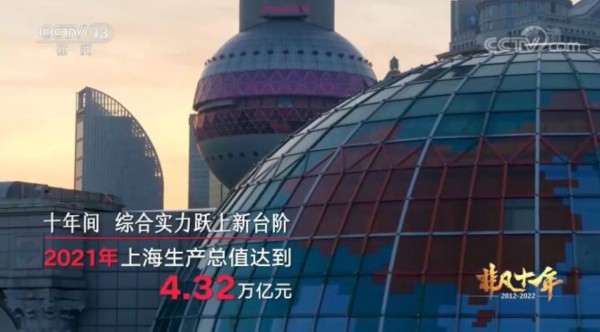 2021年,上海生产总值达到4.32万亿元。