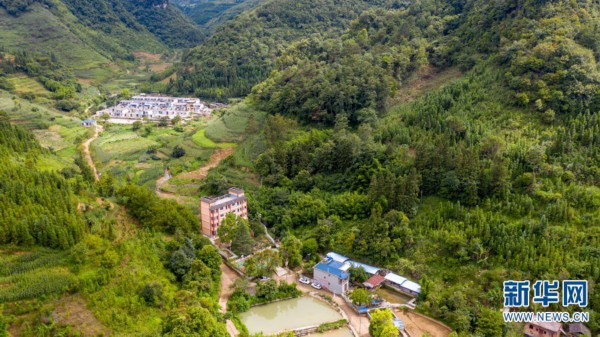 坐落在大山深处的落松地村和落松地小学(摄于7月5日)。(新华网 赵普凡 摄)