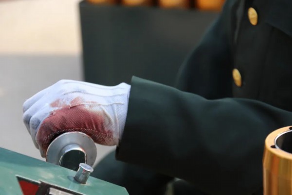 第二代改进型礼炮强化训练,战士张林在第一轮开闩验收时慢了半拍,被取消炮手资格。他悄悄买了一副白色线手套,自我加压训练,每天反复练习推拉重达20公斤的炮闩,手套磨出了大洞,虎口和掌心渗出的鲜血染红了手套。正是靠着这股拼劲狠劲,张林最终取得优秀成绩。