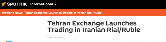 俄罗斯卫星通讯社19日刚刚消息称,德黑兰交易所已启动伊朗里亚尔对俄罗斯卢布的交易。
