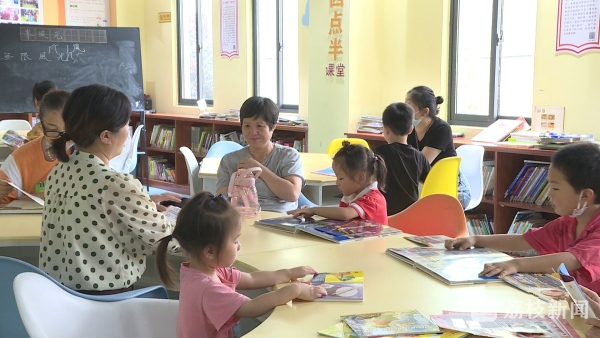 炎炎夏日,豫新街道江山社区新时代文明实践站里,十多名儿童在家长的陪同下,正在学习、看书。