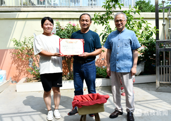 今天,区文旅局、区融媒体中心、区博物馆、开发区文体中心一行,再次来到发现现场,进行实地勘察。同时,对王祖顺父女俩予以表彰与奖励。