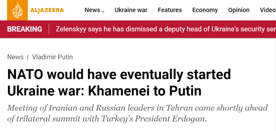 半岛电视台:哈梅内伊告诉普京,北约最终会发动乌克兰战争