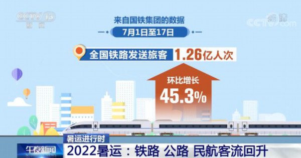 来自国铁集团的数据:7月1日至17日,全国铁路发送旅客1.26亿人次,环比增长45.3%,高峰日发送旅客达838.3万人次,运输安全平稳有序。今年暑运,全国铁路预计发送旅客5.2亿人次。