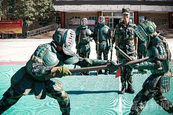 随后,集训队组织受训官兵穿戴好护具,以单兵训练、双人对抗的方式组织实施,提枪、突刺、动作一气呵成,喊杀声震耳欲聋。