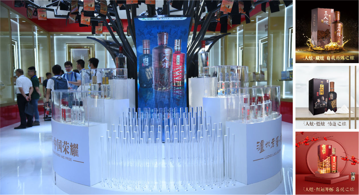 据了解,在本届博览会上,泸州老窖·三人炫呈现了丰富的产品和完美陈列,体现了不同产品的特点,三人炫·藏炫其窖香浓郁、陈香突出、回味醇厚;三人炫·悟炫口感陈香厚重,空杯留香,饮用优雅舒适;三人炫·红运开怀入口更柔顺,醇香、雅致、厚重无缝融合,通体中国红,象征美好与祝福,喜庆之时,畅饮开怀。