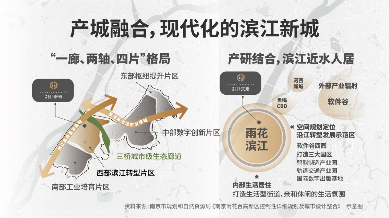 与其同时,一座冉冉升起的滨江新城——雨花滨江全新而生,规划定位「沿江转型发展示范区」,创新产城融合标杆。(数据来源:《南京市雨花台区国土空间总体规划(2020-2035年)》)