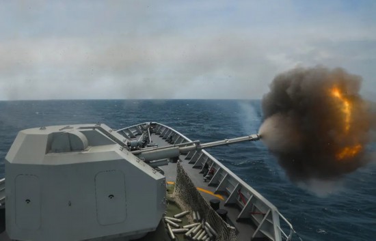 先后进行了主炮对岸射击