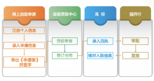 (1)借款学生登录“学生在线系统”进行贷款申请后导出并打印《国家开发银行生源地贷款申请表》。