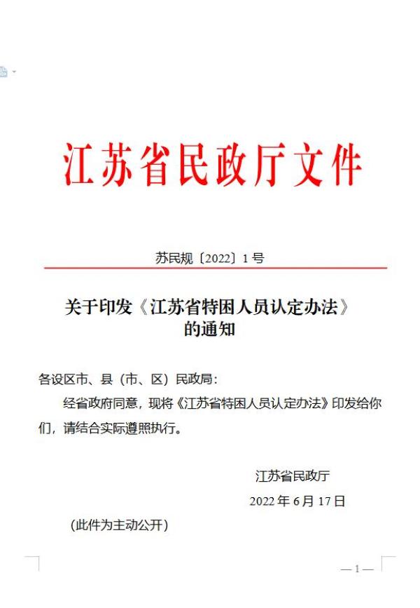 特困人员是困难群众中最困难、最脆弱的群体。截至6月底,全省共保障特困人员20.37万人。记者今天(7月21日)从江苏省民政厅获悉,我省制定出台《江苏省特困人员认定办法》,适度放宽有关认定条件,细化收入财产具体规定,加强与相关政策的衔接,进一步规范我省特困人员认定工作,确保应救尽救、应养尽养。《办法》自2022年8月1日起施行。
