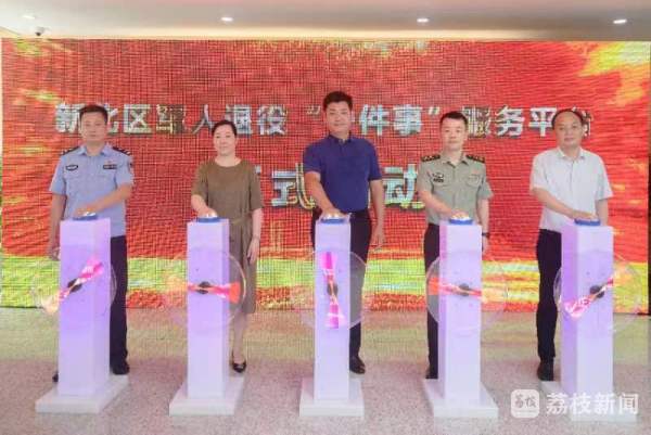 在激昂的音乐声中,区人武部、人社局、行政审批局、退役军人事务局、公安分局等5部门领导共同按下了启动按钮,标志着新北区军人退役“一件事”服务平台正式启用。