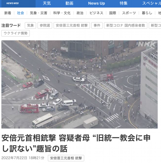 NHK:枪击前首相安倍的嫌犯母亲称“对统一教感到抱歉”