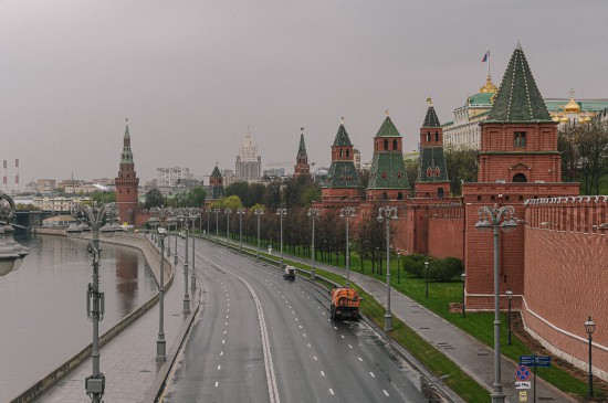 2020年5月4日在俄罗斯首都莫斯科的克里姆林宫旁拍摄的道路。新华社发(叶甫盖尼·西尼岑摄)
