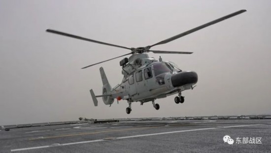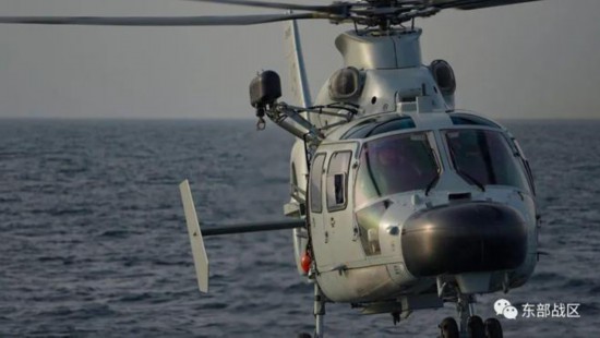 舰载直升机盘旋在任务空域周围
