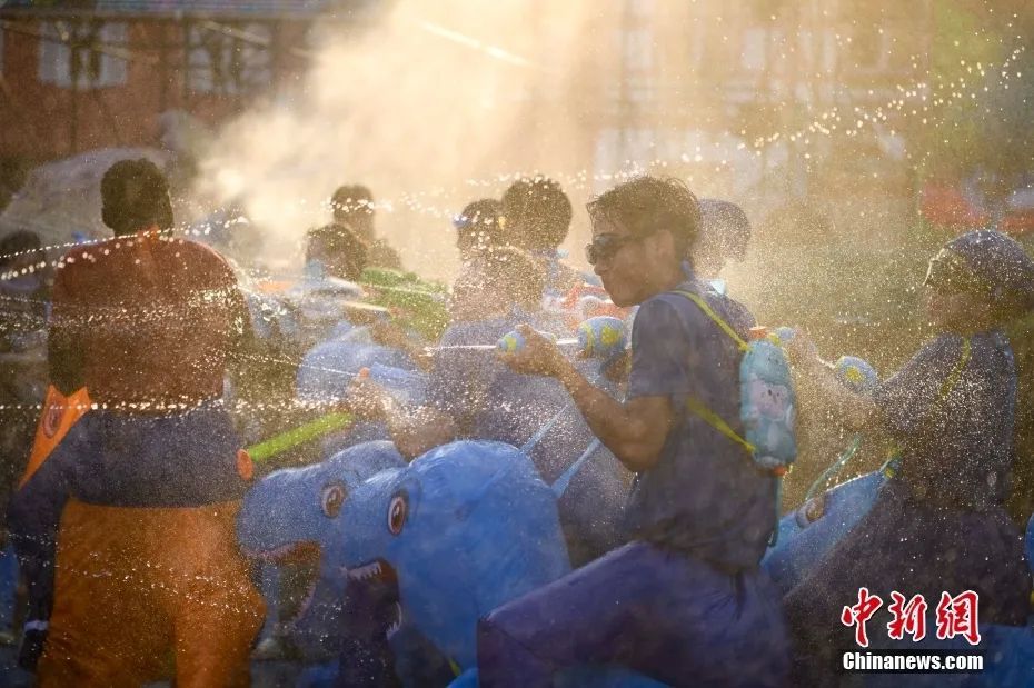 资料图:7月15日,民众在湖南长沙世界之窗泼水狂欢消暑。中新社记者 杨华峰 摄