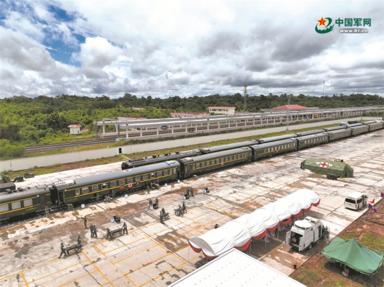 解放军报万象7月22日电 左胜男、曾理报道:“中老卫勤分队联合指挥组,我是前方救援指挥中心,请立即派员前往受灾区域,组织实施人员搜救……”7月22日,中老“和平列车-2022”人道主义医学救援联合演习暨医疗服务活动,在老挝万象省蓬洪火车站展开全流程联合演练。