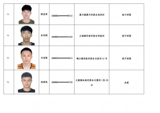 记者7月23日获悉,为严厉打击治理电信网络新型违法犯罪活动,保护人民群众生命财产安全,文昌市打击治理电信网络新型违法犯罪工作联席会议办公室拟对文昌市非法滞留缅北人员作出联合惩戒措施。