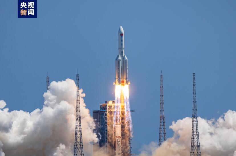 7月24日14:22:22,长征五号B遥三运载火箭搭载中国空间站问天实验舱,在海南文昌航天发射场发射升空。