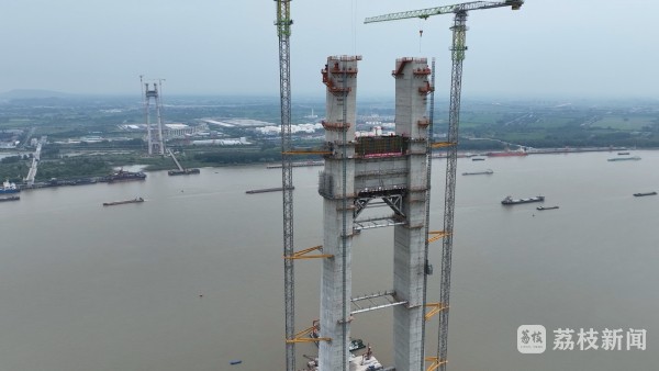 在施工过程中,工程项目部克服了许多困难。中交路建南京仙新路过江通道A1标南塔现场施工负责人王斌介绍:“上横梁距离地面有230多米高,所以说下面如果是5级风的话,上面普遍能达到6到7级。我们施工过程中要避开风的影响,另外上横梁宽度只有6米,避免高空作业的影响,钢筋都是分截段吊装上来的,以保证安全。后续只剩一个N字型结构吊装了,南塔其他的主体工程全部完成!”
