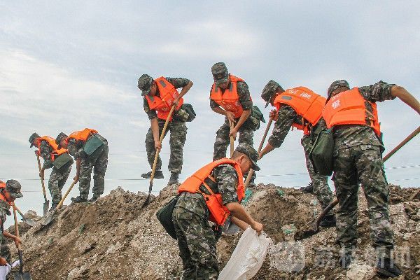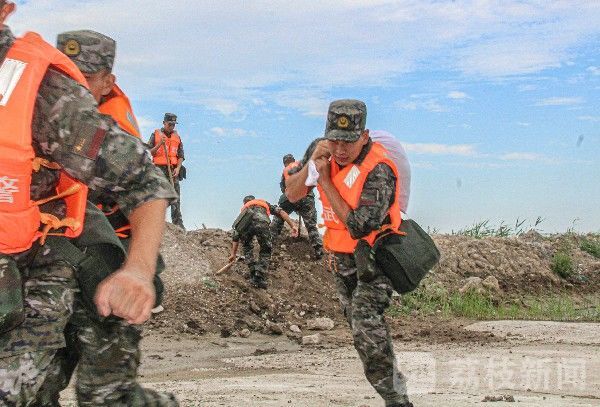 演练中,全体官兵闻令而动,迅速登车、分组集结;车辆协同出动,运送人员物资快速到达指定地点。到达现场后,迅速勘察地形、研判险情、垒筑子堤、克服管涌……官兵配合默契、齐心协力,演练顺利进行。