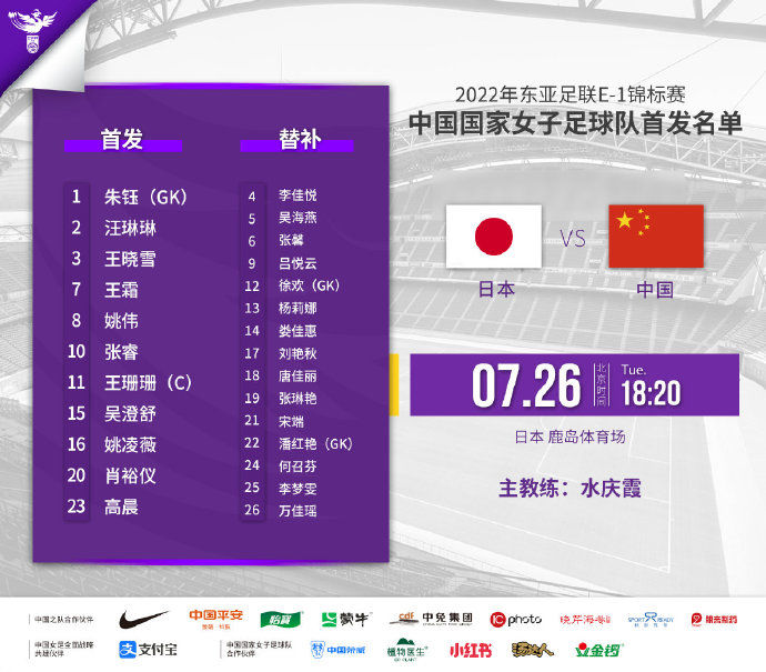赛前,中国女足首发名单出炉。