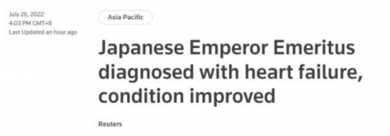 外媒:日本明仁上皇被诊断患心力衰竭,经治疗病情好转