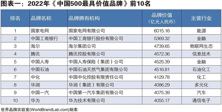 世界品牌实验室(World Brand Lab)是一家国际化的品牌价值研究机构,全资附属于世界领先的数字技术和战略咨询公司——世界经理人集团,由1999年诺贝尔经济学奖得主罗伯特·蒙代尔(Robert Mundell)教授倡议创建并担任首任主席。世界品牌实验室的专家和顾问来自哈佛大学、耶鲁大学、麻省理工学院、哥伦比亚大学、牛津大学、剑桥大学、欧洲工商管理学院等世界顶级学府,其研究成果已经成为许多企业并购过程中无形资产评估的重要依据。连续十九年发布的《中国500最具价值品牌》,采用“收益现值法”对品牌价值进行测评。这是基于经济适用法,综合了消费者研究、竞争分析以及对企业未来收入的预测。
